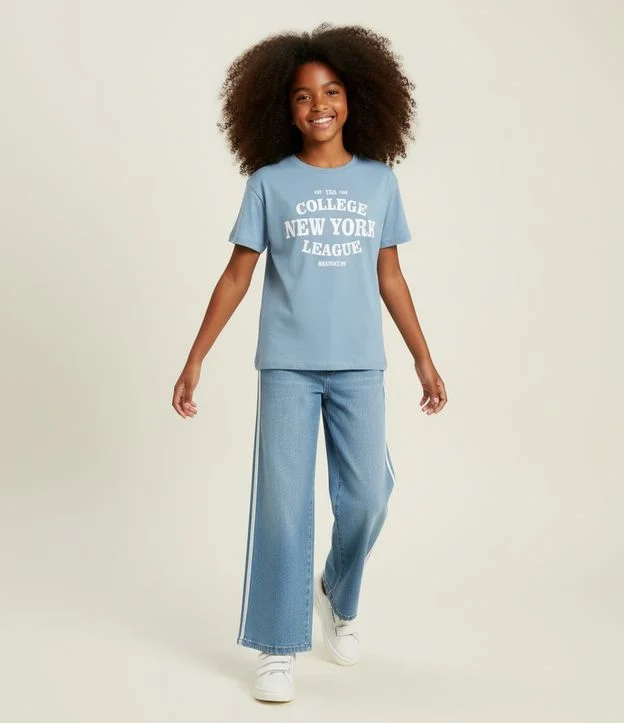 Camiseta Infantil com Estampa Lettering – Tam 7 a 16 Anos Azul