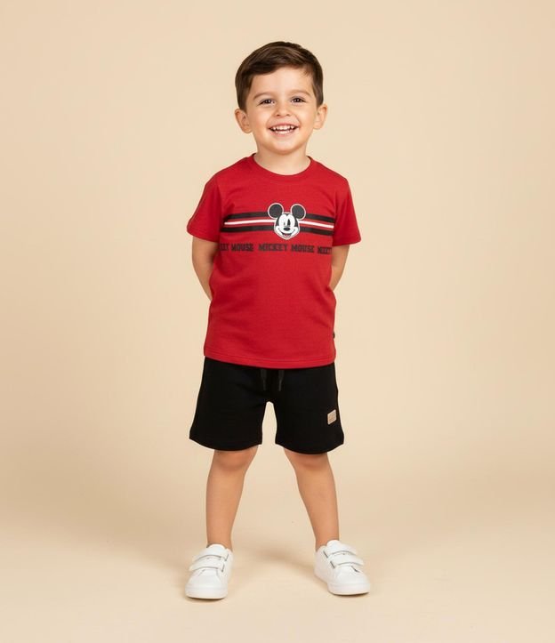 Camiseta Infantil com Estampa Listra e Mickey Mouse - Tam 1 a 6 anos Vermelho