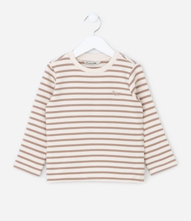 Camiseta Infantil com Estampa Listrada - Tam 1 a 5 Anos Bege