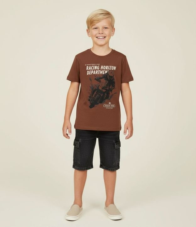 Camiseta Infantil com Estampa Moto Racing - Tam 5 a 14 anos Marrom