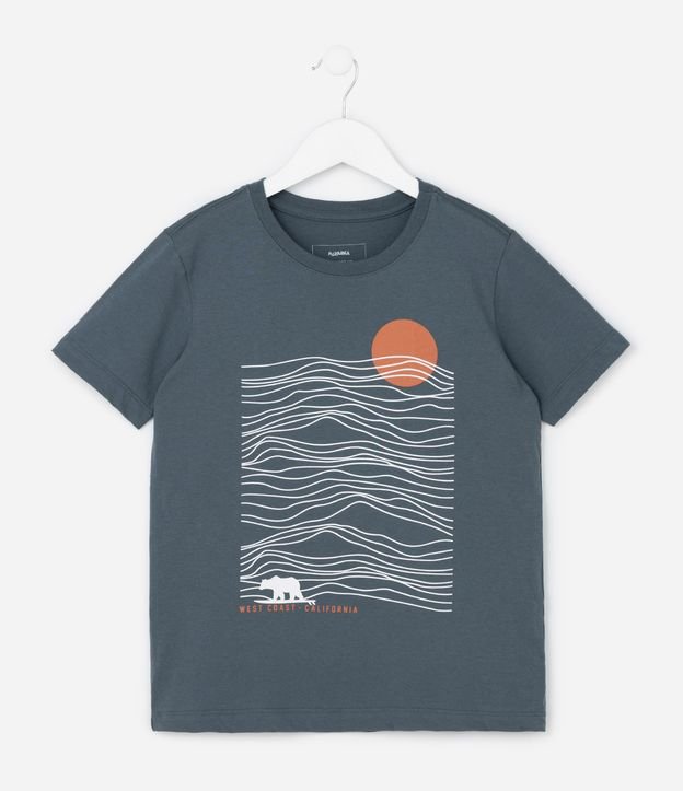 Camiseta Infantil com Estampa Ondas - Tam 5 a 14 Anos Azul