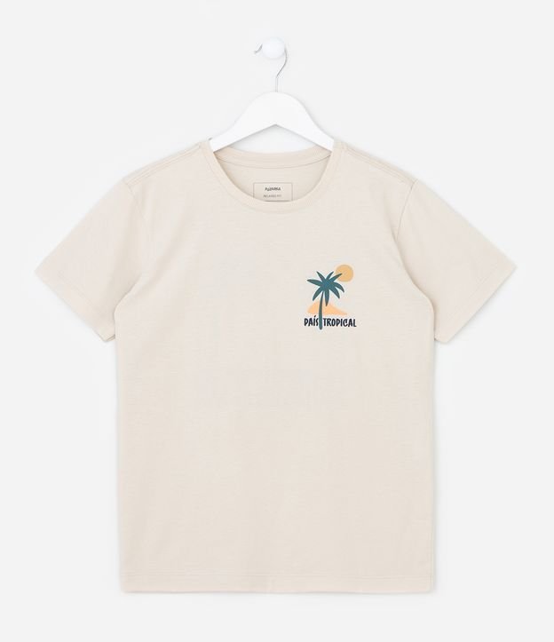 Camiseta Infantil com Estampa País Tropical - Tam 5 a 14 Anos Bege