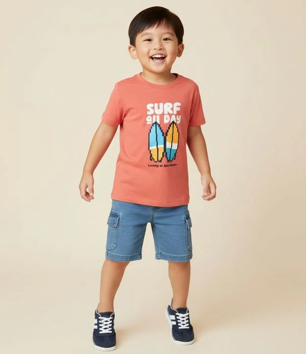 Camiseta Infantil com Estampa Pranchas - Tam 1 a 6 Anos