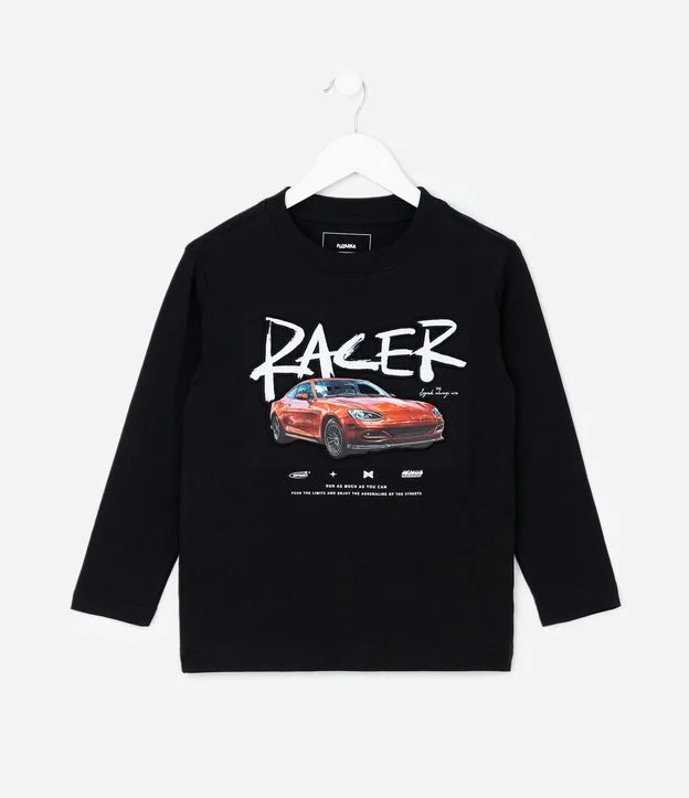 Camiseta Infantil com Estampa Racer – Tam 5 a 14 Anos Preto