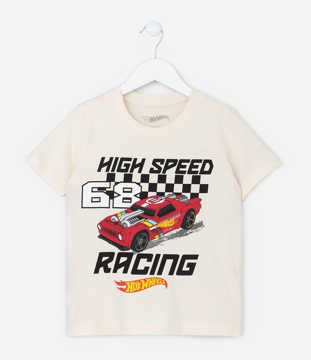 Camiseta Infantil com Estampa Racing 68 Hot Wheels - Tam 4 a 12 Anos Bege