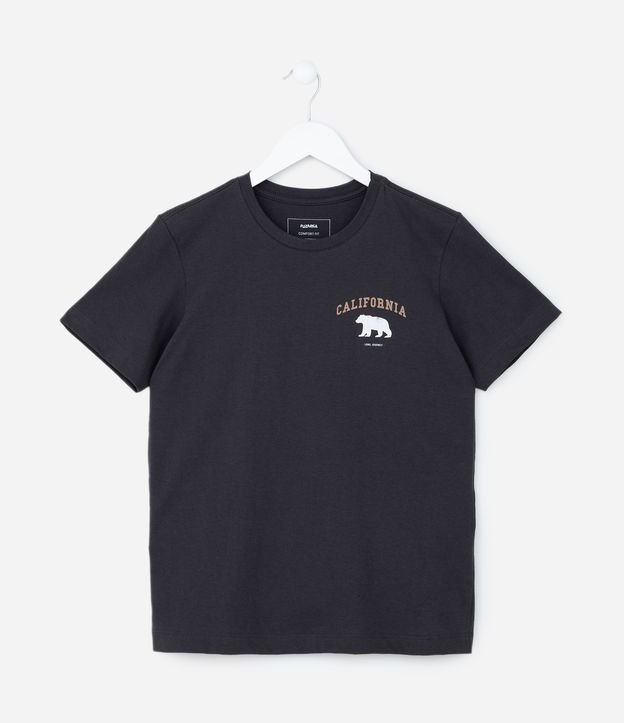 Camiseta Infantil com Estampa Urso California - Tam 7 a 14 Anos Cinza