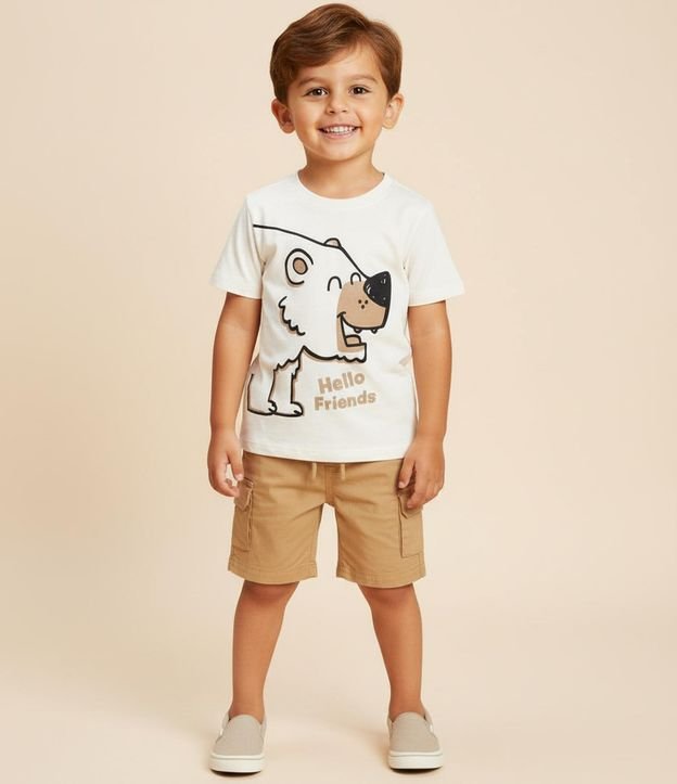 Camiseta Infantil com Estampa Urso - Tam 1 a 6 Anos Off White