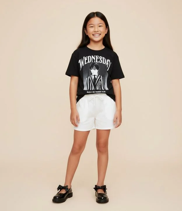 Camiseta Infantil com Estampa Wandinha e Lettering em Foil - Tam 5 a 14 Anos