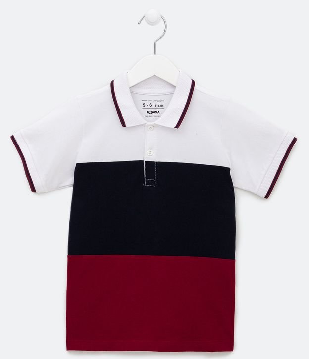 Camiseta Infantil com Gola Polo e Recortes - Tam 5 a 14 anos
