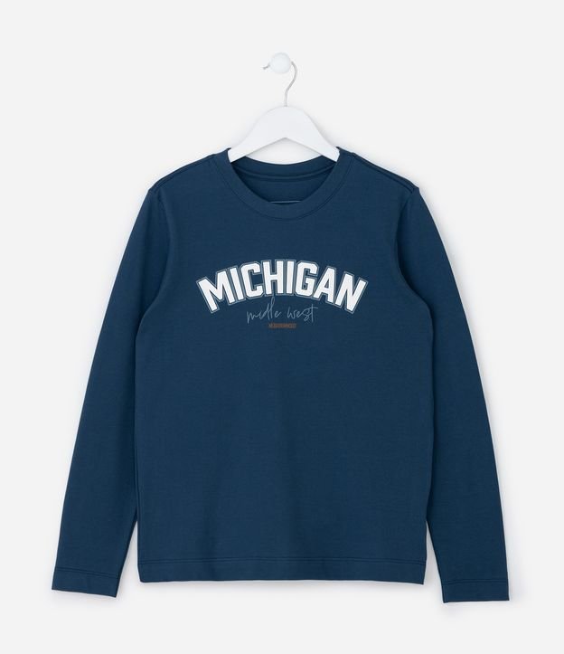 Camiseta Infantil com Lettering Michigan - Tam 5 a 14 Anos Azul