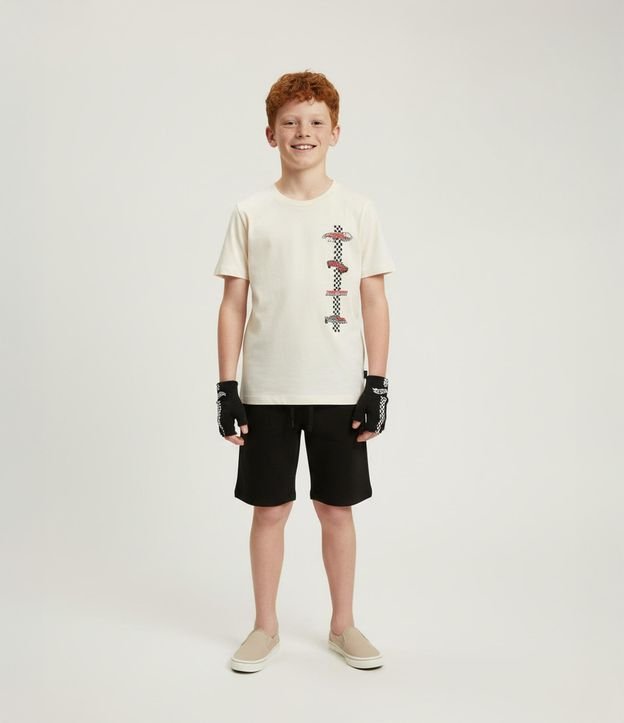 Camiseta Infantil com Luvinhas e Estampa Hot Wheels - Tam 3 a 10 Anos Bege