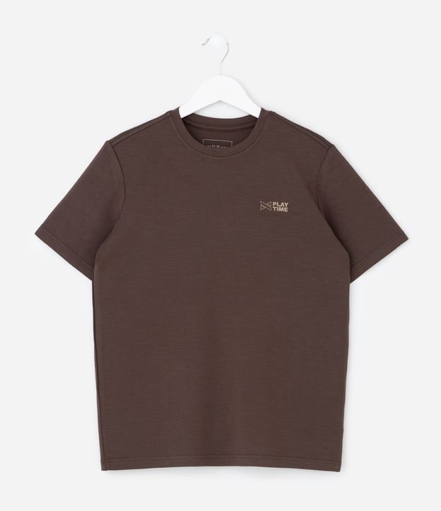 Camiseta Infantil com Tecnologia Dry e Estampa Lettering – Tam 5 a 14 Anos Marrom