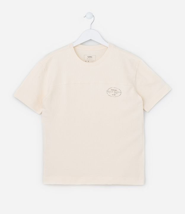 Camiseta Infantil com Textura Atoalhada e Estampa no Peito - Tam 5 a 14 Anos Bege