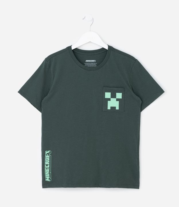Camiseta Infantil em Algodão com Estampa Minecraft – Tam 5 a 14 Anos Verde Escuro