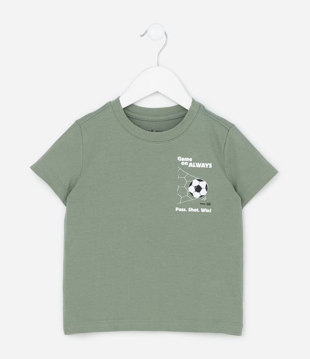 Camiseta Infantil em Algodão com Manga Curta e Estampa Bola no Gol Verde