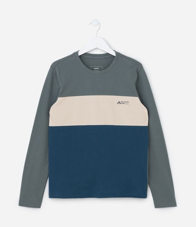 Camiseta Infantil em Malha Piquet com Blocos de Cores - Tam 5 a 10 anos