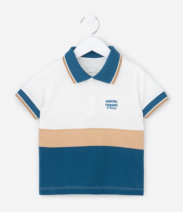 Camiseta Infantil em Piquet com Gola Polo e Bordado – Tam 1 a 5/6 Anos Branco/Azul/Bege