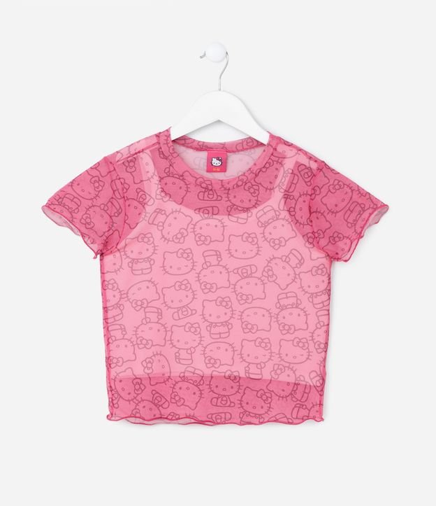 Camiseta Infantil em Tule com Estampa Hello Kitty - Tam 7 a 14 Anos Rosa