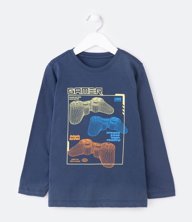 Camiseta Infantil Estampa Controles de Games - Tam 5 a 14 Anos