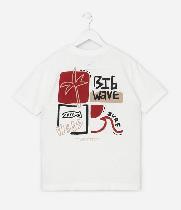 Camiseta Infantil Estampa Frente e Costas Coqueiro de Praia - Tam 5 a 14 Anos Branco