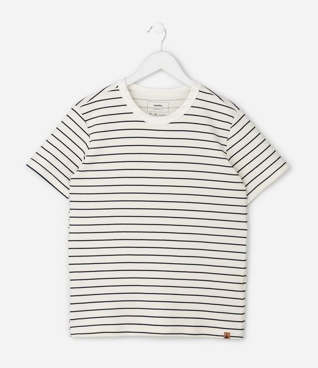• Camiseta Infantil Listra Trabalhada em Relevo – Tam 5 a 14 Anos Branco/Azul 1