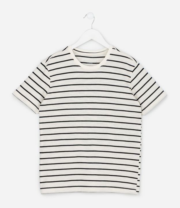 Camiseta Infantil Listrada em Fio Tinto - Tam 5 a 14 Anos Preto/Branco