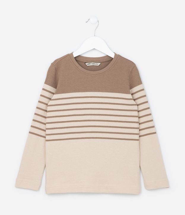 Camiseta Infantil Listradas com Bloco de Cores - Tam 5 a 14 anos Marrom