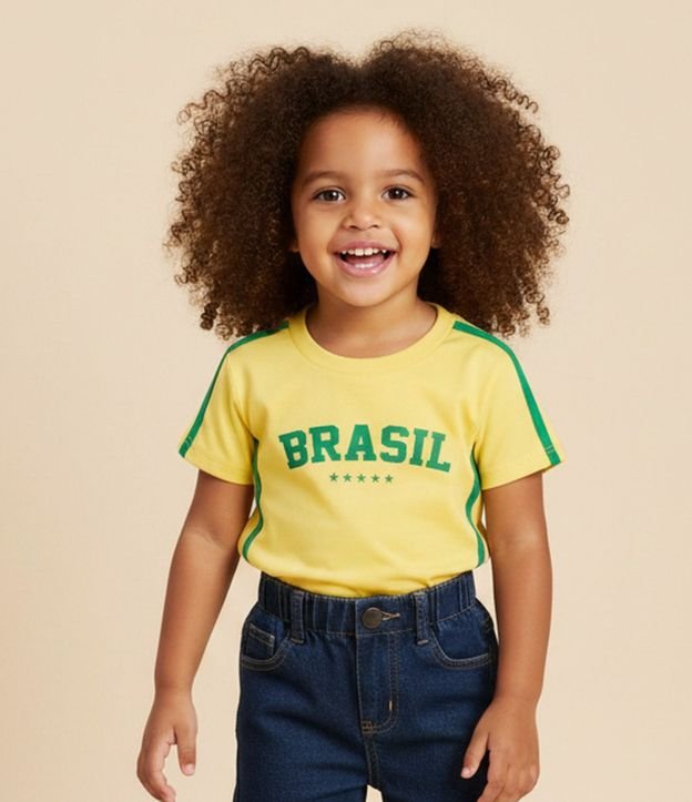 Camiseta Infantil Manga Curta Brasil - Tam 1 a 6 Anos Amarelo