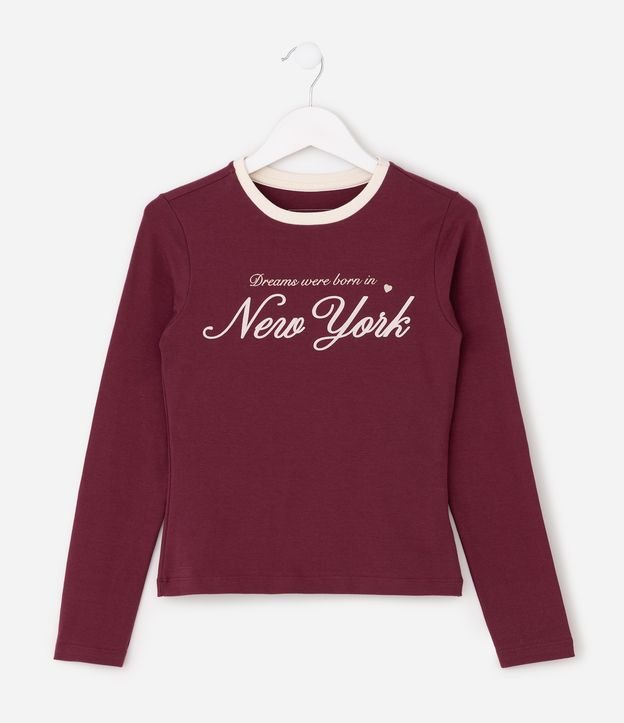 Camiseta Infantil Manga Longa New York - Tam 5 a 16 Anos Vermelho