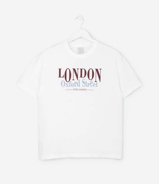 Camiseta infantil fit over confeccionada em algodão certificado BCI e boas práticas ambientais. Possui gola redonda, mangas curtas e lettering bordado inspirado em Londres, trazendo caimento amplo.