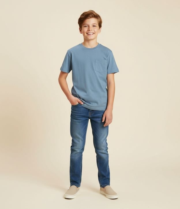 Camiseta Infantil Regula com Bolsinho – Tam 5 a 14 Anos Azul