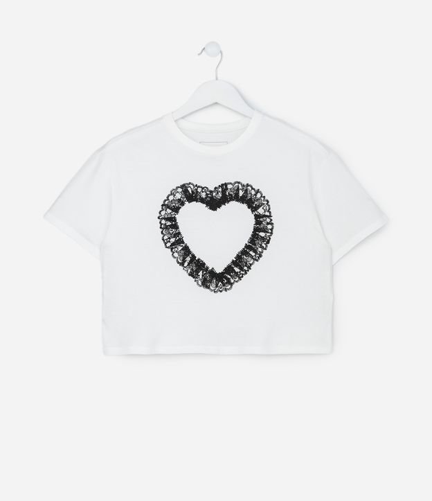 Camiseta Infantil Relaxed com Estampa de Coração – Tam 5 a 14 Anos Branco