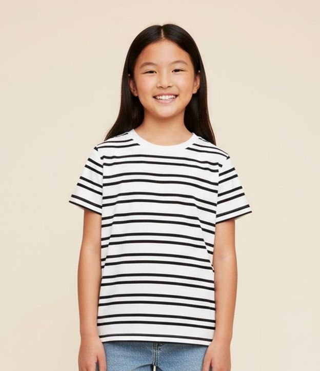 Camiseta Infantil Seamless com Estampa Listrada - Tam 5 a 14 Anos Branco/Preto