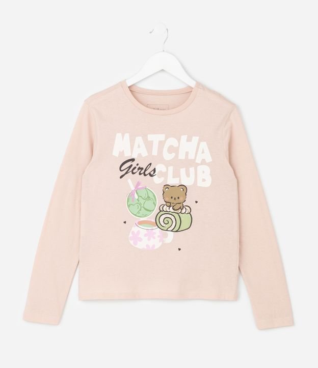 • Camiseta Infantil Slim com Estampa Matcha – Tam 5 a 14 Anos Rosa Claro 1