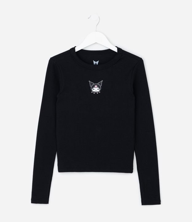 Camiseta Infantil Slim em Ribana com Estampa Kuromi – Tam 7 a 16 Anos Preto