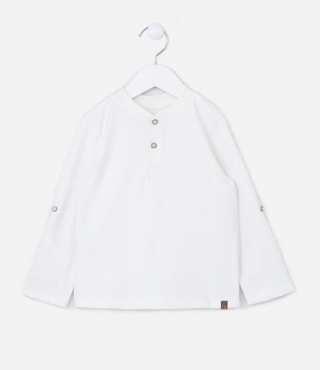 Camiseta Infantil Texturizada com Botões na Gola - Tam 1 a 5 Anos