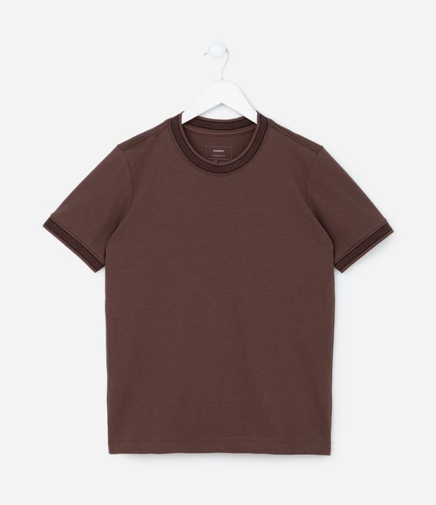 Camiseta Infantil Texturizada com Viés Contrastantes - 5 a 14 Anos Marrom