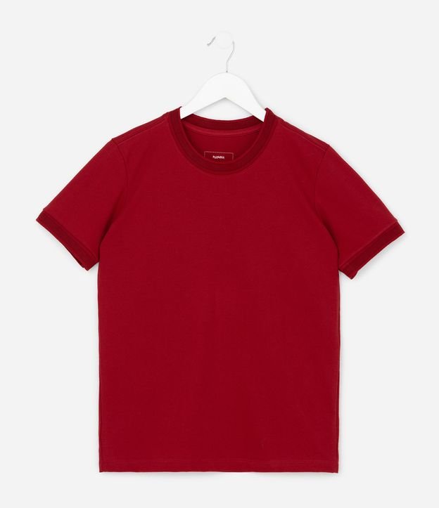 Camiseta Infantil Texturizada com Viés Contrastantes - 5 a 14 Anos Vermelho