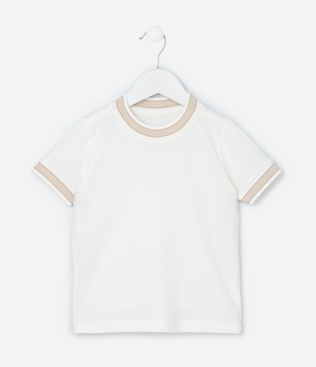 Camiseta Infantil Texturizada com Viés Contrastantes - Tam 1 a 6 Anos Off White
