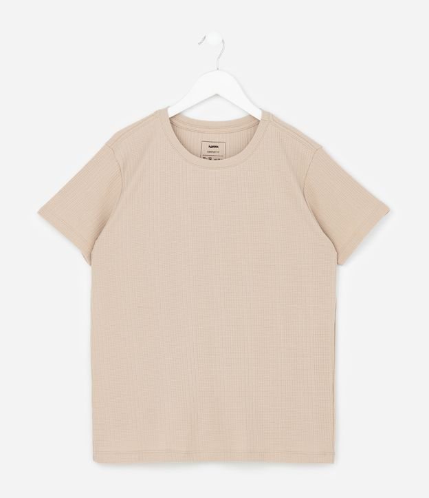 Camiseta Infantil Texturizada em Malha Quadrilê - Tam 5 A 14 Anos Bege
