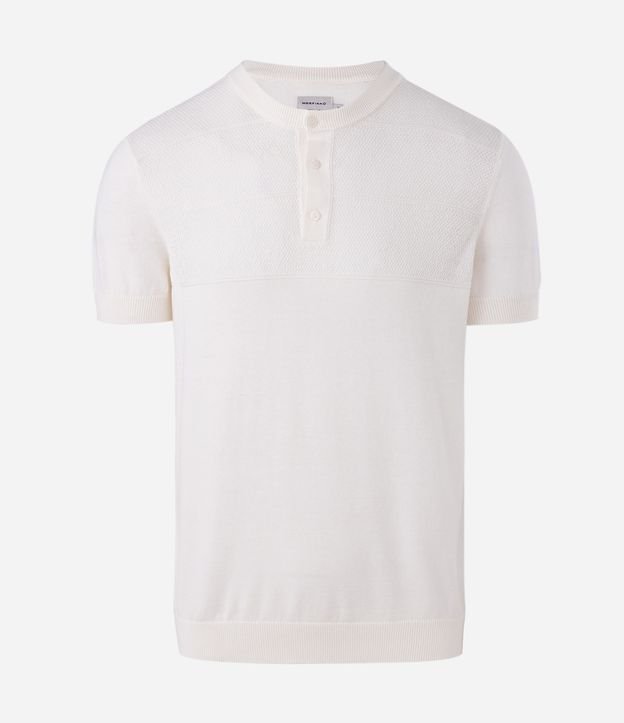 Camiseta Manga Curta Efeito Tricô Texturizado Gola Padre Branco