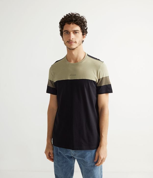 Camiseta Manga Curta em Algodão Blocada com Lettering "Optimism"