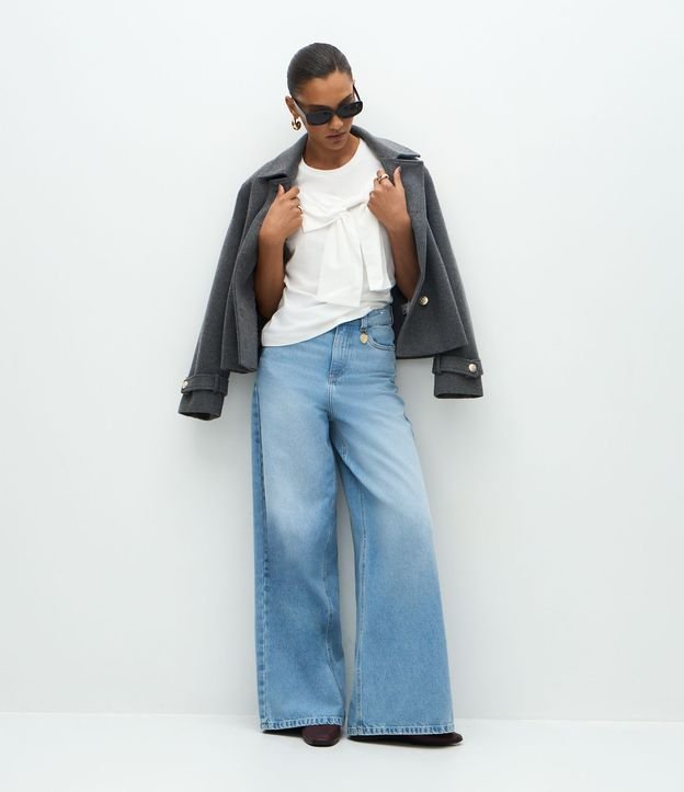 Camiseta feminina confeccionada em algodão certificado Bci. Possui manga curta, modelagem reta, decote redondo e laço grande aplicado na parte frontal, criando volume.
