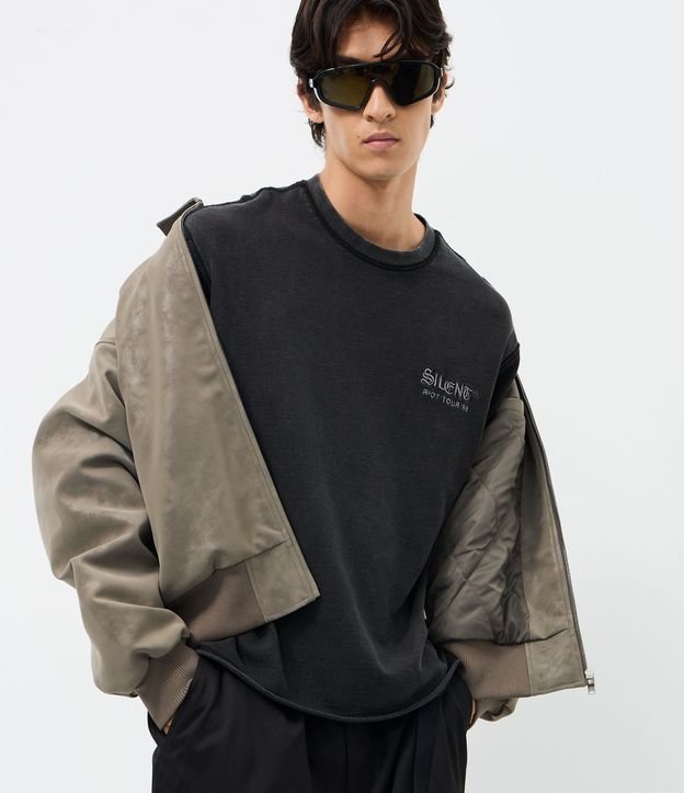Camiseta masculina confeccionada em algodão mais sustentável, gola redonda, mangas longas ajustadas. Bordado Silent Riot Tour 98 no peito.