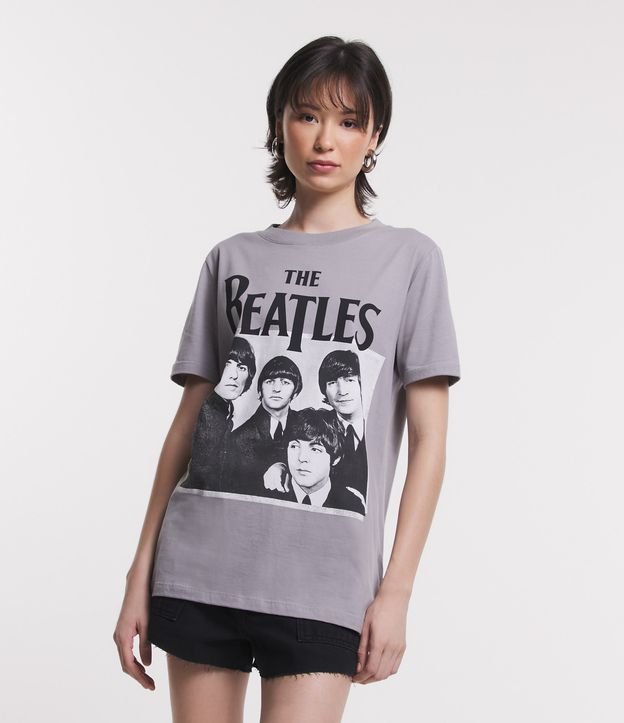 Camiseta Manga Curta em Meia Malha com The Beatles Estampado