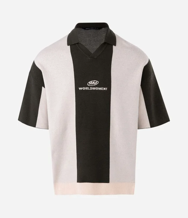 Camiseta Manga Curta em Tricô com Gola Polo e Lettering World Moment