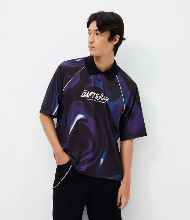 Camiseta Manga Curta Gola Polo com Estampa Daftsound Roxo