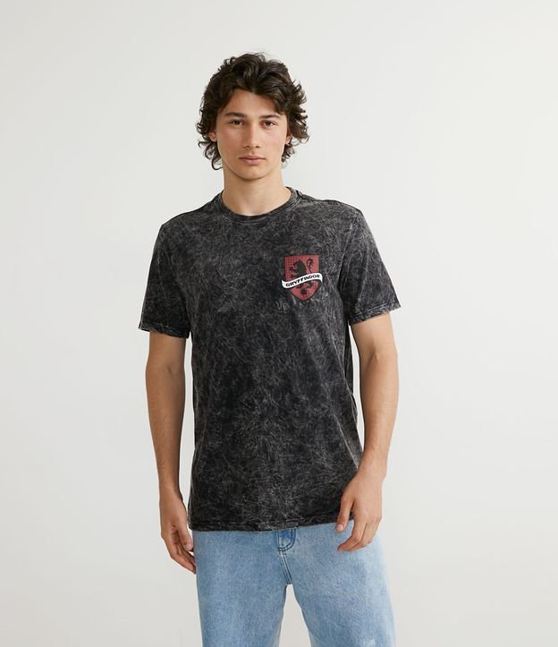 Camiseta Manga Curta Marmorizada com Estampa Grifinória