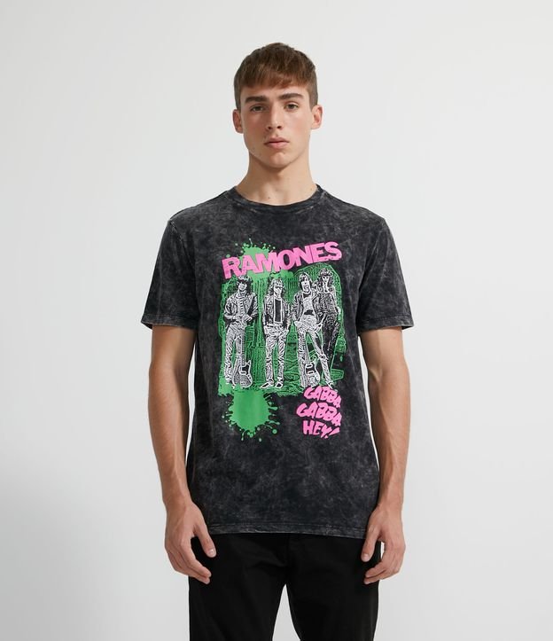 Camiseta Manga Curta Marmorizada Estampa Ramones