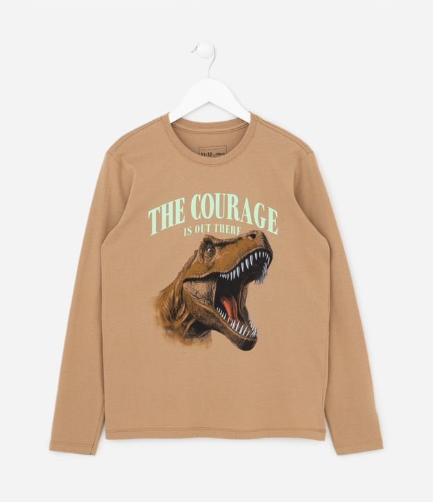 Camiseta Manga Longa Infantil com Estampa de Dinossauro - Tam 5 a 14 anos